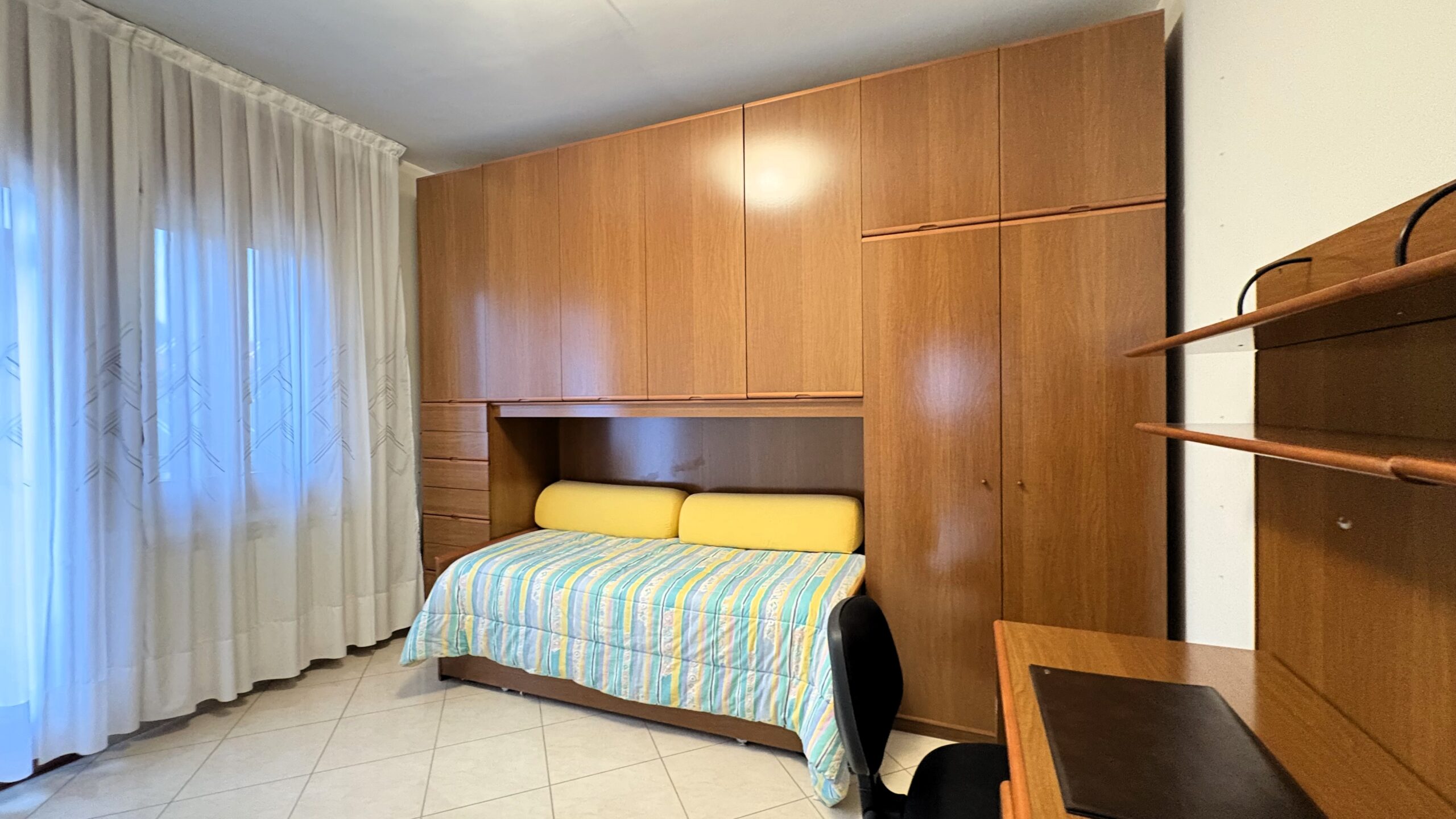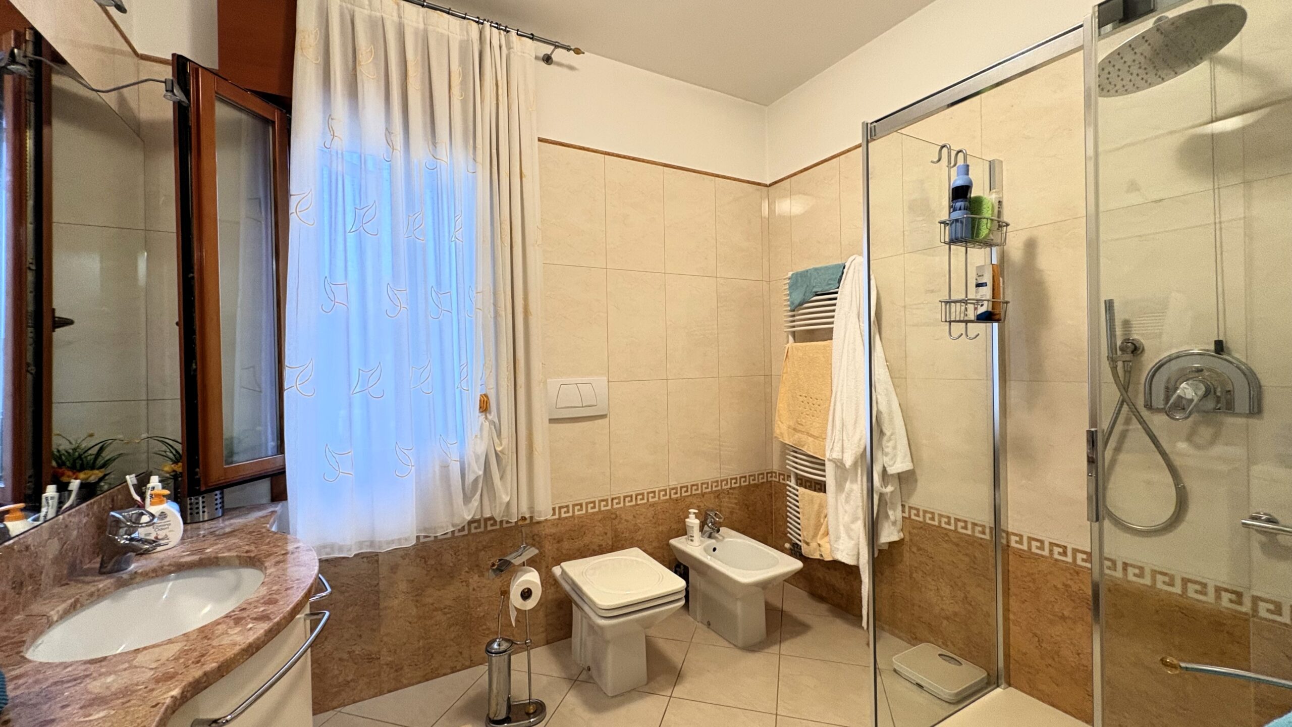 In zona residenziale di forte passaggio, Spazio Casa propone in vendita appartamento con vista laguna a Borgo S. Giovanni. L’immobile di mq 119 è posto al quinto ed ultimo piano di una piccola palazzina servita da ascensore e completo di garage automatizzato di proprietà di mq 20. E’ composto da ingresso, ampia zona living luminosa con poggiolo con vista aperta, cucina separata anch’essa con poggiolo e vista. Nella zona notte troviamo tre comode camere matrimoniali e bagno finestrato con ampia doccia. L’appartamento è stato ristrutturato negli anni 2000 e viene venduto completo di arredo. Anche la palazzina esternamente è stata recentemente ridipinta e ristrutturata.