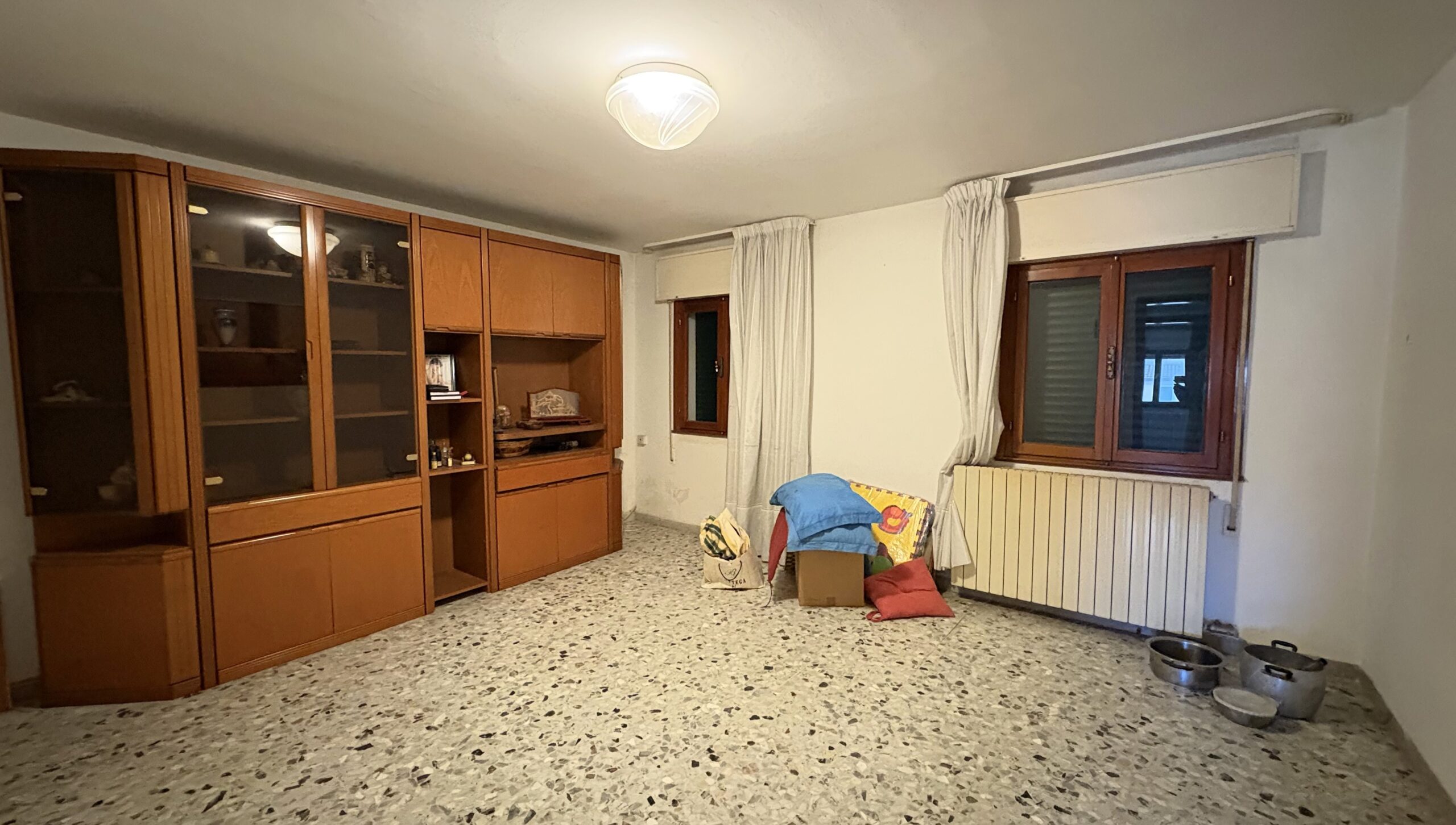 Piano primo: zona living nella quale è possibile collocare il tavolo da pranzo, cucina separata, bagno finestrato e due comode camere matrimoniali.