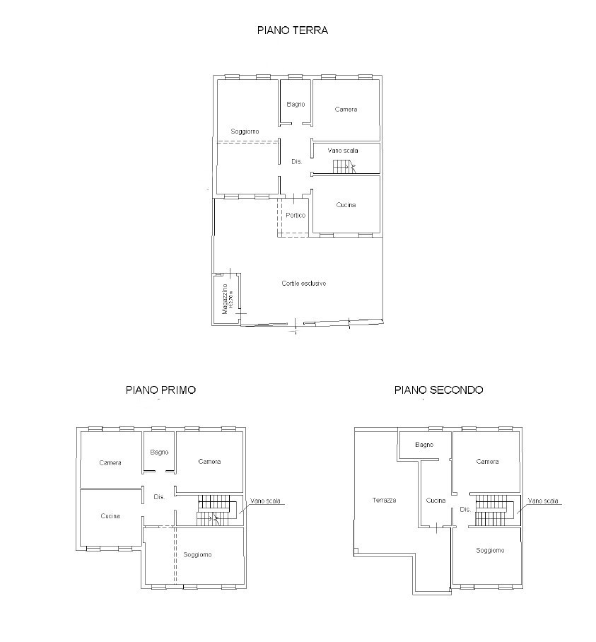 piano terra: ingresso su cortile di proprietà con accesso pedonale e carrabile, ampia zona living open space di mq 30, bagno finestrato, cucina abitabile separata e camera matrimoniale.